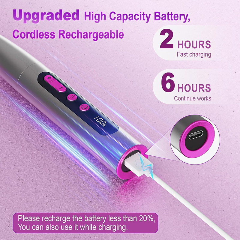 elektryczna wiertarka do paznokci Ulepszony akumulator o dużej pojemności, 2 godziny szybkiego ładowania i 6 godzin Kontynuuj pracę. Elektryczny pilnik do paznokci nadaje się do zasilacza USB, laptopa, źródła zasilania mobilnego itp. Jeśli moc akumulatorowej wiertarki do paznokci jest mniejsza niż 20%, można jej używać także podczas ładowania.