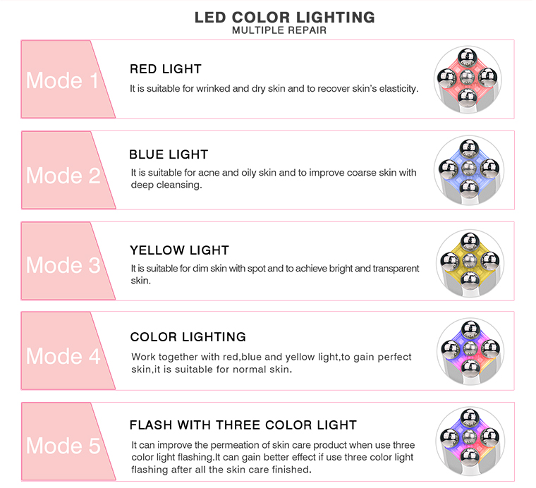 JAKIE SĄ KORZYŚCI? -- Beauty Machine to wielofunkcyjne urządzenie przeciwstarzeniowe, które wykorzystuje technologię częstotliwości radiowej (RF) z terapią światłem czerwonym/niebieskim, EMS w celu zmniejszenia linii i zmarszczek, poprawy penetracji skóry i zdolności wchłaniania itp.