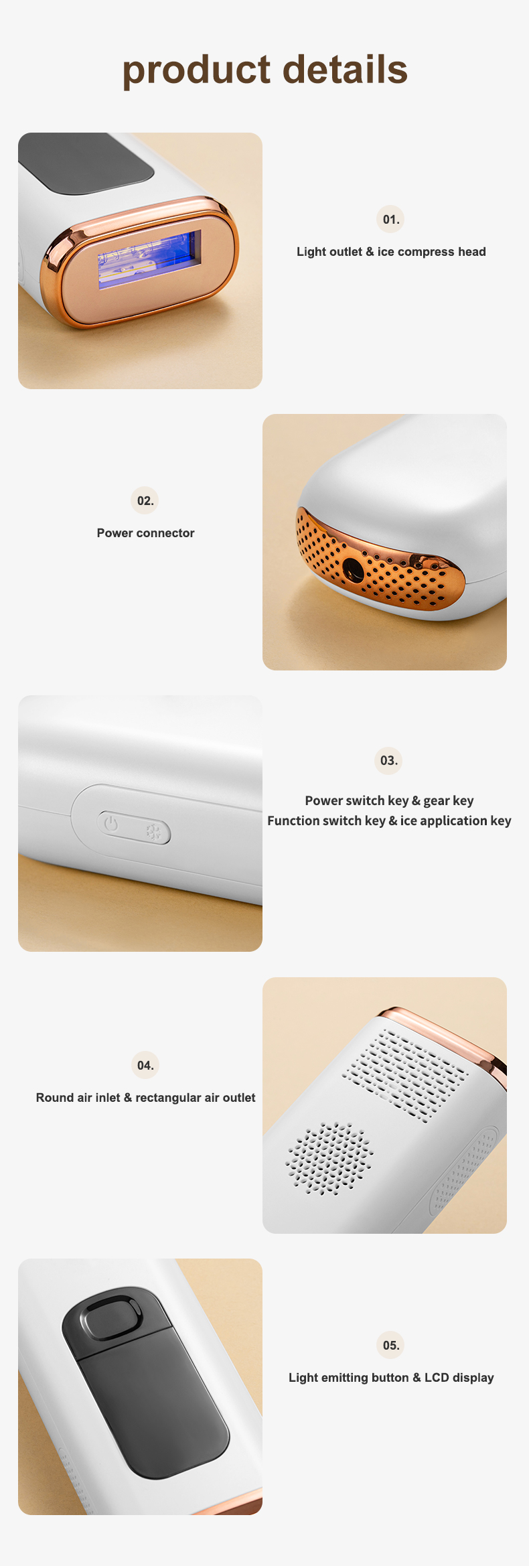 (Uwaga: 1. Nie nadaje się do skóry wytatuowanej, nadmiernie opalonej, zranionych miejsc i kobiet w ciąży. 2. Jest to urządzenie typu plug-in. Podczas zabiegu należy je zawsze podłączyć do zasilania.)
