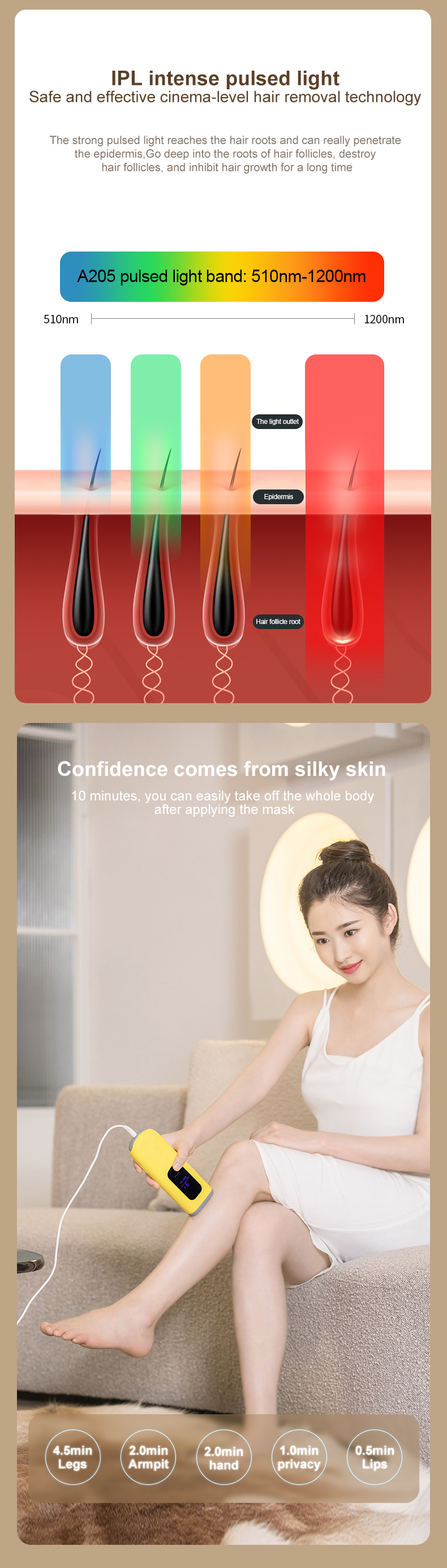 - Ciesz się gładką skórą i zauważalną redukcją włosów. Po pierwszych czterech tygodniach leczenia kontynuuj poprawki co dwa tygodnie, aby wyglądać najlepiej przez cały rok. Płaskie okienko z szafirowym światłem celuje w cebulkę włosa, zapewniając jednocześnie, że każdy błysk jest niemal bezbolesny i skuteczny.