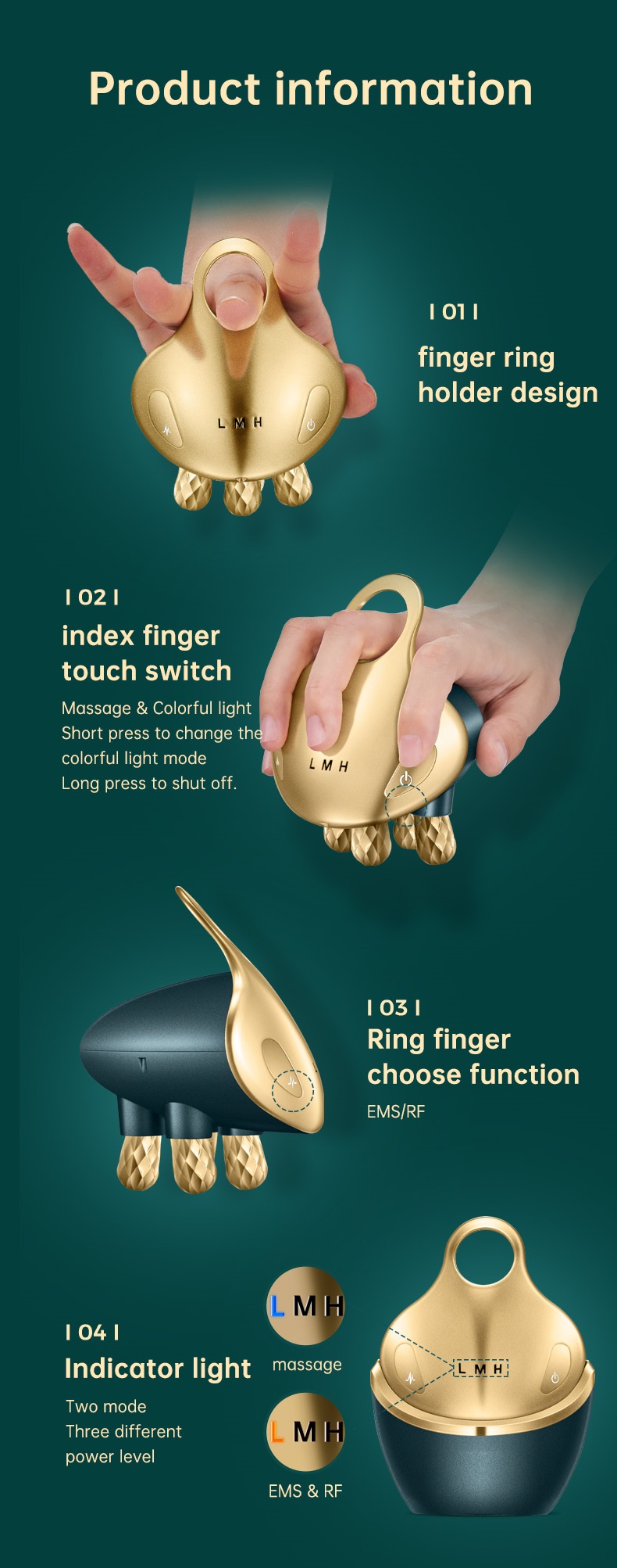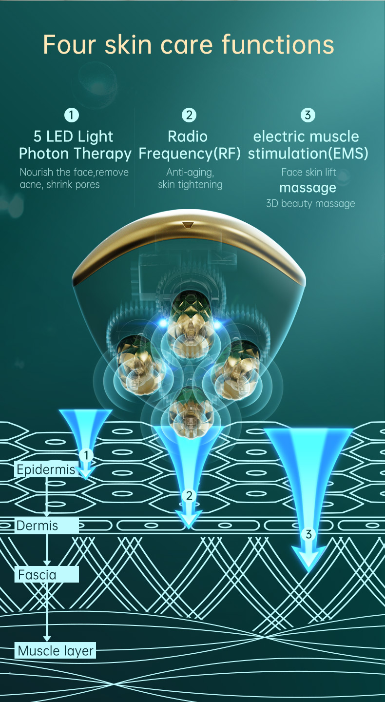2. Wielofunkcyjny masaż + EMS + RF, 3 prędkości i regulacja intensywności
