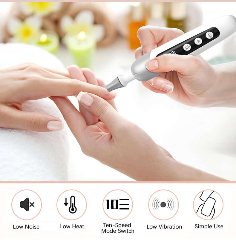 - 10 USTAWIEŃ PRĘDKOŚCI: Poznaj moc naszego zestawu do manicure elektrycznego, wyposażonego w 10 progresywnych ustawień prędkości i wszechstronne obroty zgodnie z ruchem wskazówek zegara i przeciwnie do ruchu wskazówek zegara. Wiertarka do paznokci efile gwarantuje precyzyjne piłowanie grubych paznokci u rąk i nóg i jest dostosowana do każdego rodzaju skóry, w tym osób chorych na cukrzycę.